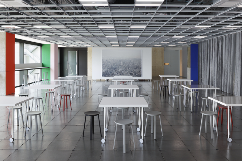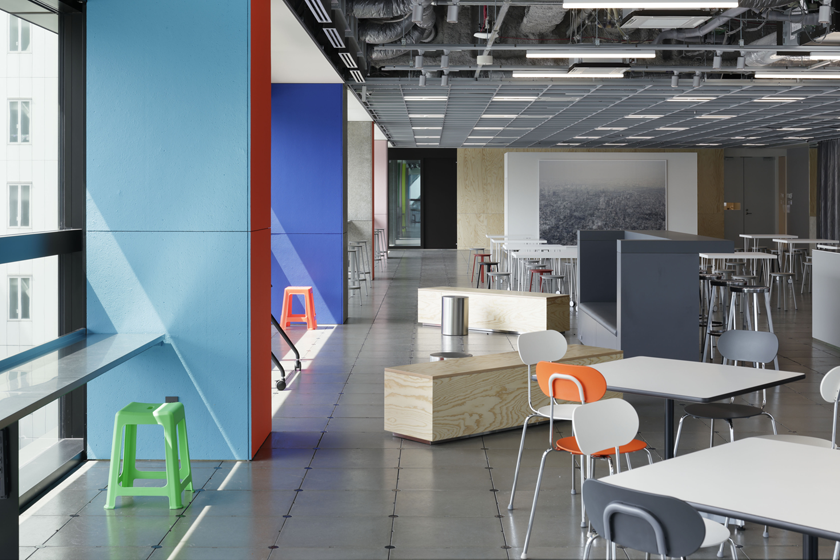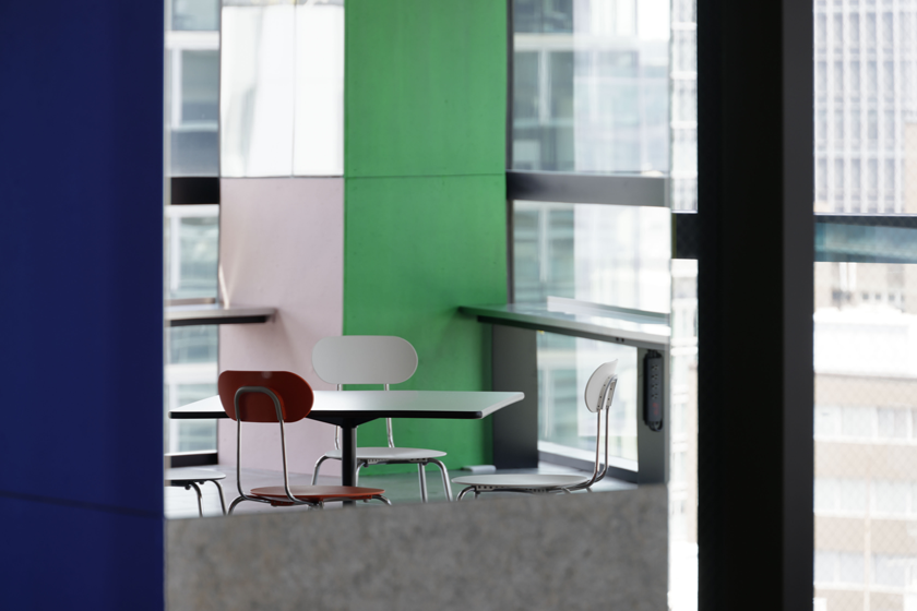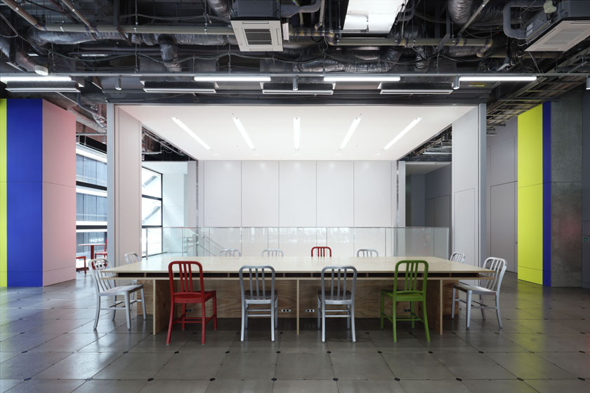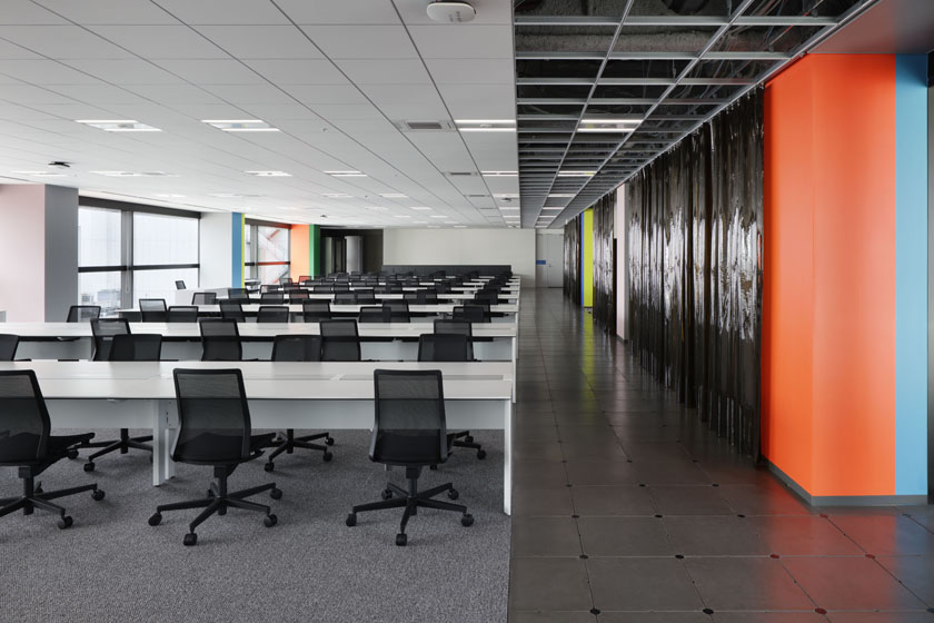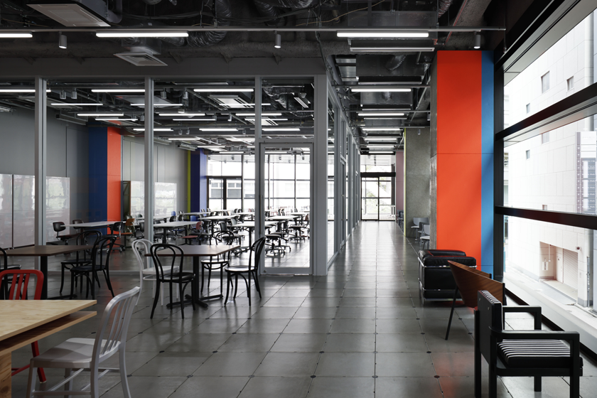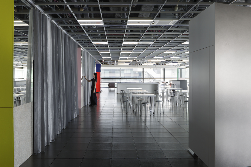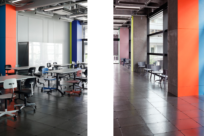 All while each of the colorful columns acts as an agent to connect subsidiary companies on different floors.