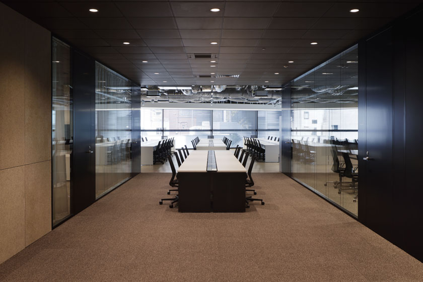 クレジットカード会社のオフィスの内装。施主がゼネコンの設計施工で、銀座に建設途中の建売ビルの購入を決めた所から我々の計画はスタートした。