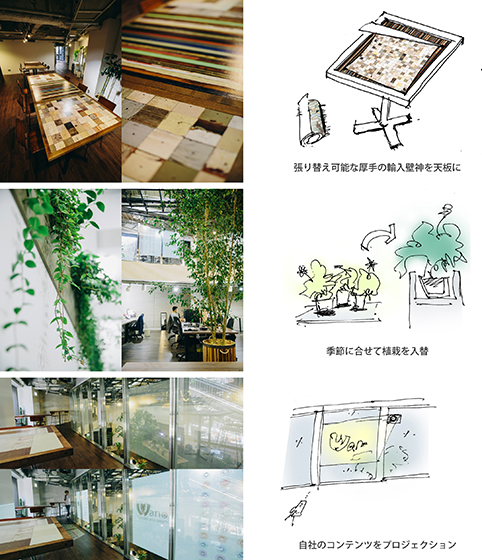 In true Japanese fashion, buildings too, come in excessive packaging, and one of our aims was to challenge the wasteful practice of stripping down new office buildings only for tenants to rebuild interiors. By intervening as interior designers early in the construction, we minimized overlapping work, significantly reducing waste and the building's lifecycle carbon footprint.