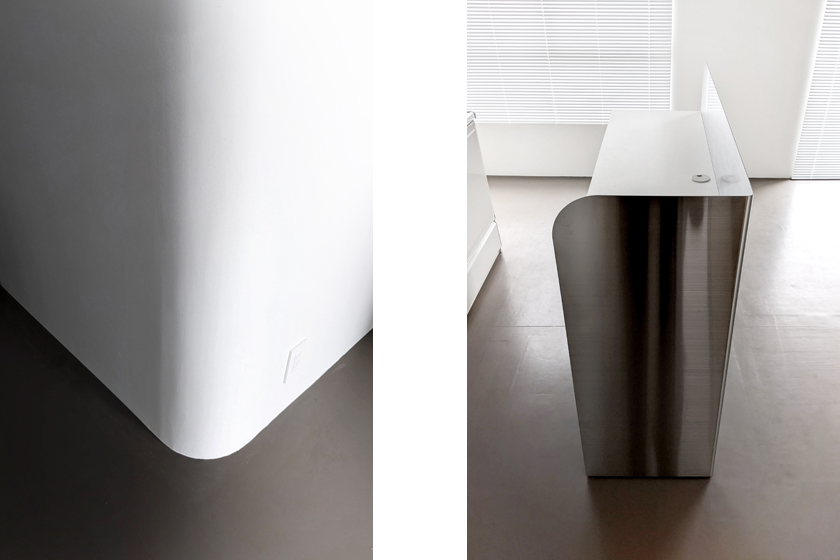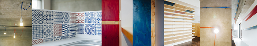 デザイン上重要なビビットなカラーは会社の新しいVIである白と黒のロゴマークをカラーバーの色彩に分解して施主の社是である「多様性」を表現したもの。我々はオフィスの柱や家具にビビットなカラーを散りばめてランダムに配置、視点を遠くまで運び実際の空間以上の拡がりを演出する事を意図してデザインした。