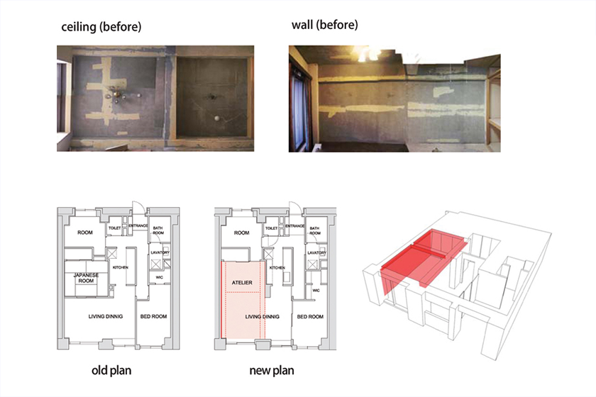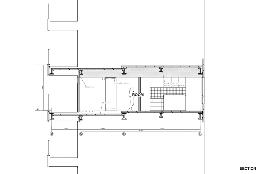一方で、ビルの工事は既にスタートしていた。その為、建築工事の途中から施主サイドとしてプロジェクトに参画して工事サイドと協力する事で、A工事では下地の状態を引き渡しとし、C工事の仕上げ工事を即時にスタートできる様に仕様を調整。「倹約」の実践として仕上げを剥がした素地のマテリアルを多く採用する事で経年変化を許容して工期と工事費の大幅な圧縮を図った。結果としてC工事の内装施工費をFFE込みで30万円/坪を下回るパフォーマンスを実現した。